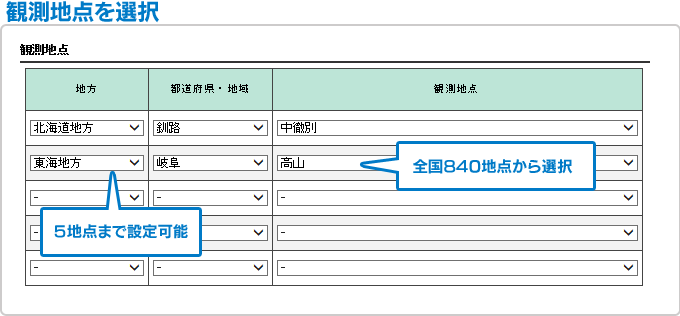 3階層目:「熱中症予防情報」の観測地点 に合わせて設定